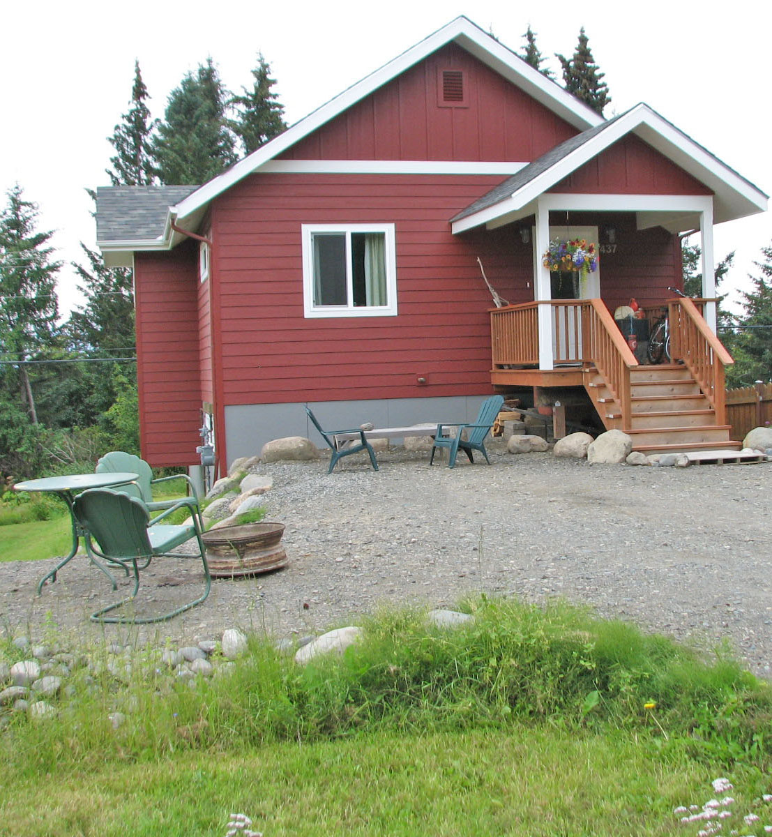 I note that there’s “a view of Kachemak Bay, a hiking trail at the end of the street, and that mosquitoes are not a problem” [here]. Before I make the listing visible to the public, I may add that the walk to reach the in-town fun is downhill, which means uphill coming back, with South Peninsula Hospital just two blocks beyond. I might mention bear activity in the trail area.
